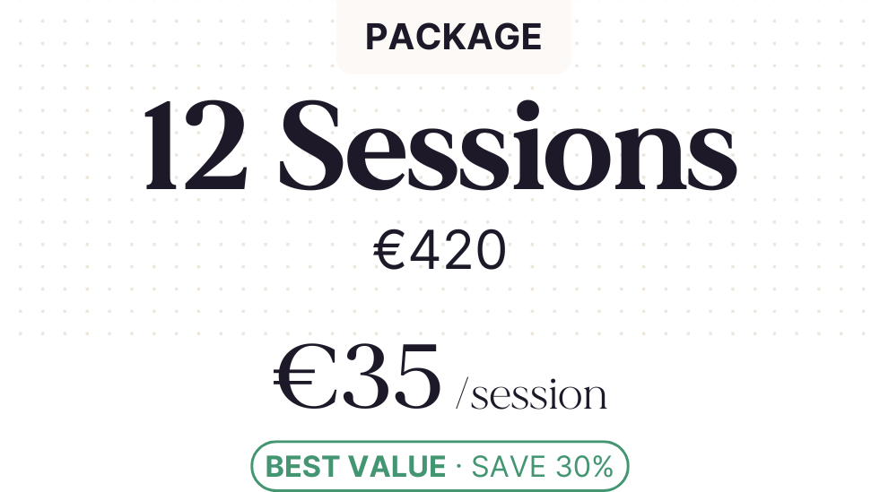 Receive 12 sessions bookable over a year and save 30%.