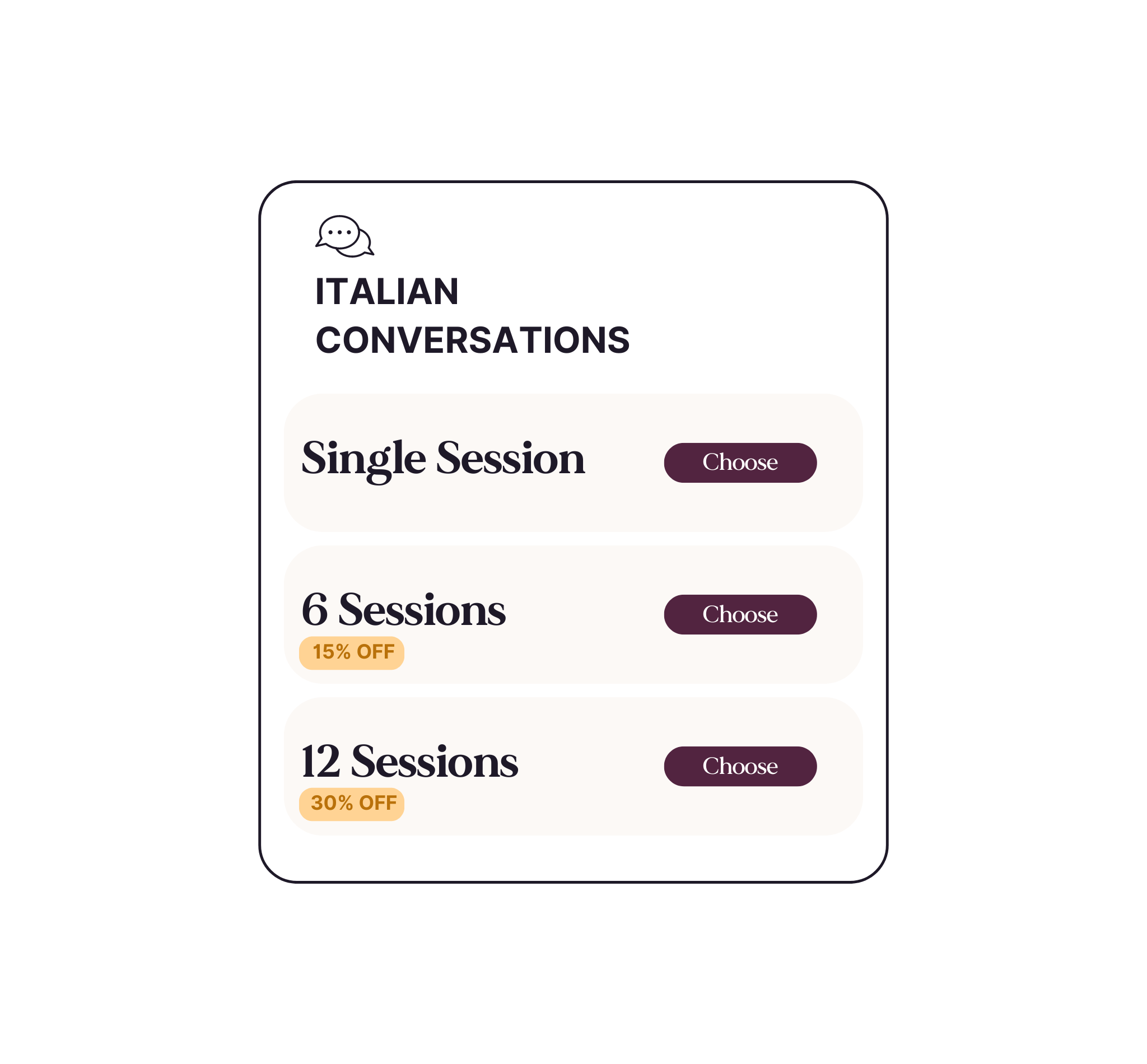 Book a single 60-min session with your dedicated Italian teacher.