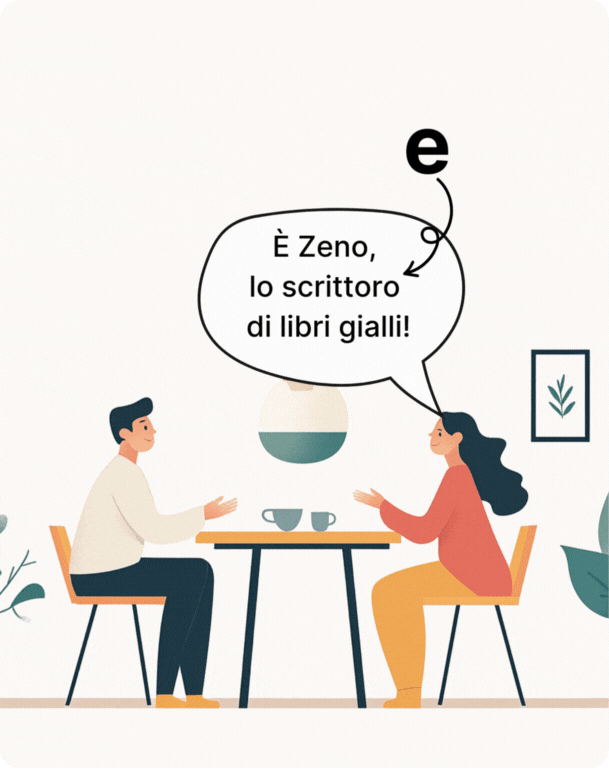 Chi? Il signore con la pipa tra le mani? Ah! Ma lui è Zeno, lo scrittore di libri gialli, inventa storie originali e travolgenti. Non importa se il clima è bello o brutto lui va in giro per la città con Miro, il suo gatto rosso e ascolta la gente che chiacchiera. Se guardi la televisione, a volte è l’ospite del programma notturno di casi irrisolti. Per Zeno non esistono verità nascoste, lui è un ottimo investigatore e trova sempre la spiegazione giusta anche per gli enigmi più complicati!